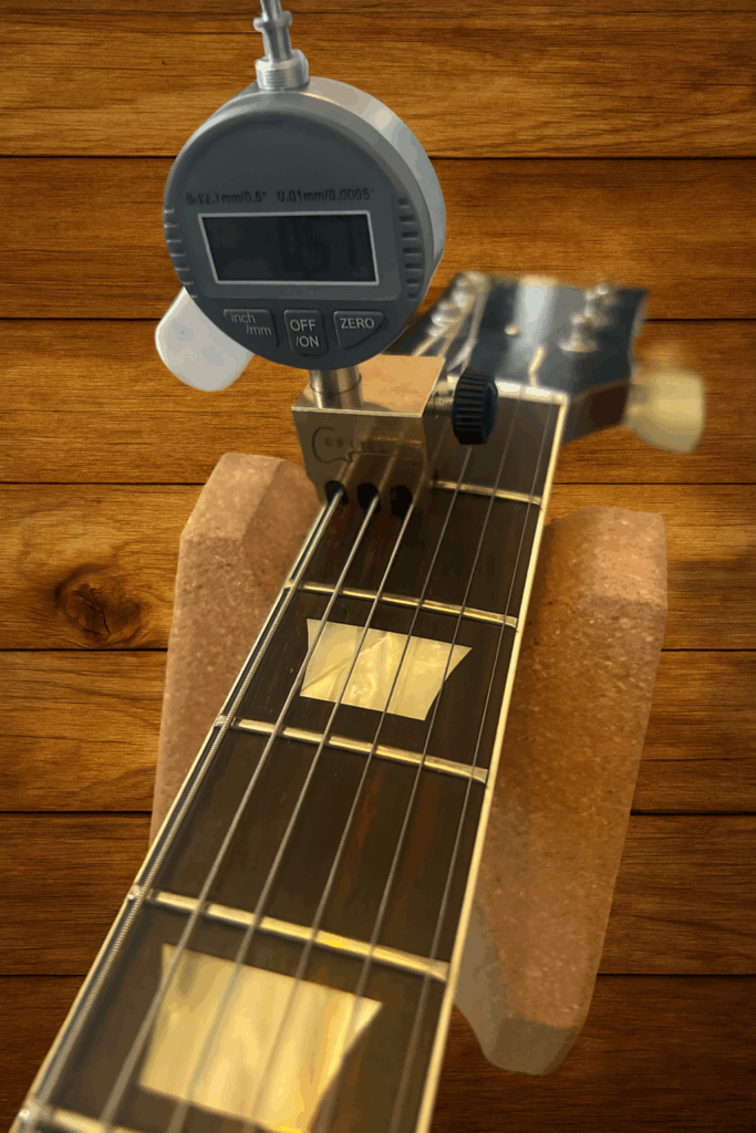 The nut slot height determines how your strings vibrate from the very first fret. Too high? You’re fighting intonation and feel. Too low? Buzz city. A digital nut gauge lets us measure slot height to the thousandth of an inch or hundredth of a millimeter—no more “eyeballing” with feeler gauges or relying on inconsistent fret clearance.